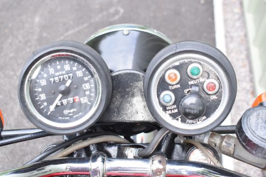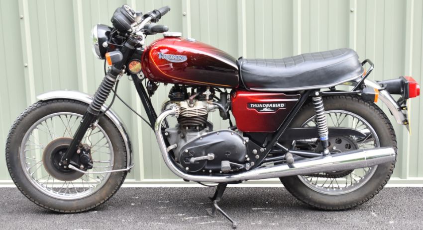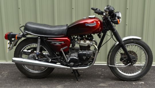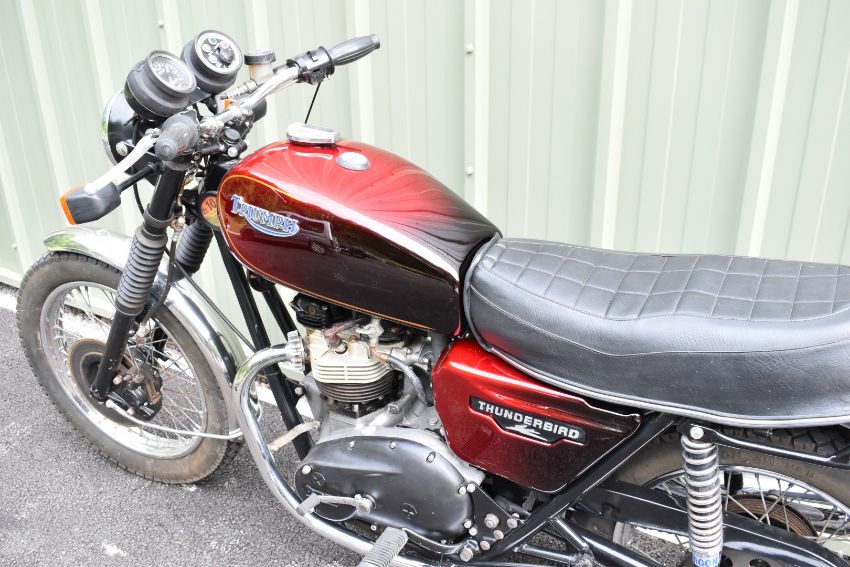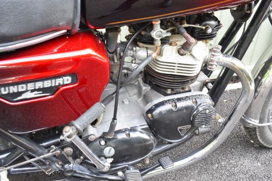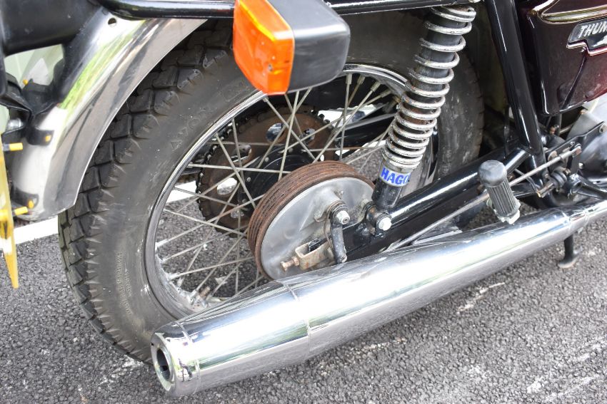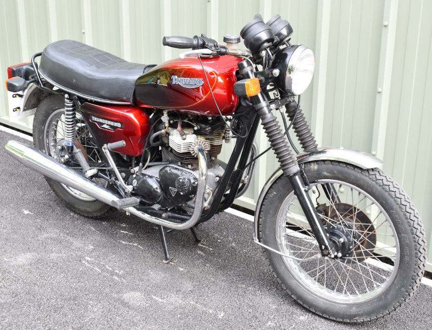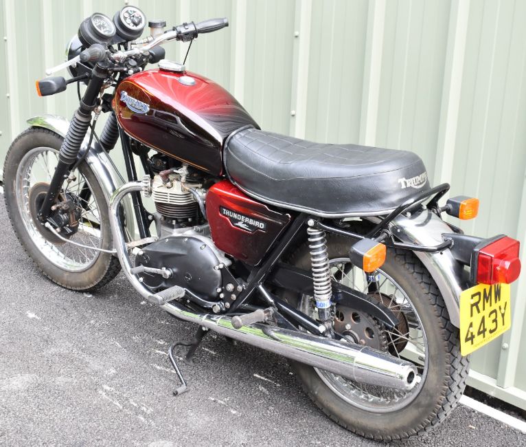 1982 Triumph TR65 Thunderbird motorcycle, registration number RMW 443Y. Purchased new by the vendor's father in law (original receipt and service book in history file), it has been used and enjoyed, especially in its earlier days but appears well cared for, odometer currently records 75707 miles10%+VAT buyer's premium on this lot