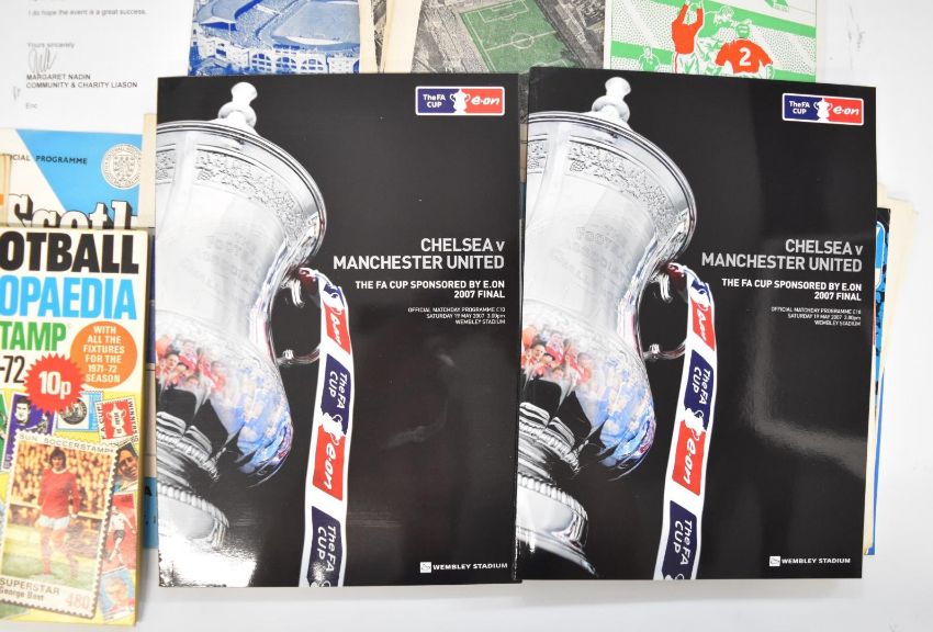 Collection of football programmes including three for 2007 FA Cup Final Chelsea vs Manchester United, further programmes from 1950/60s including Swansea, Cardiff, Wolves, Tottenham, Burnley, Arsenal, West Ham and Sheffield United, some internationals including B Team Ireland vs Romania etc