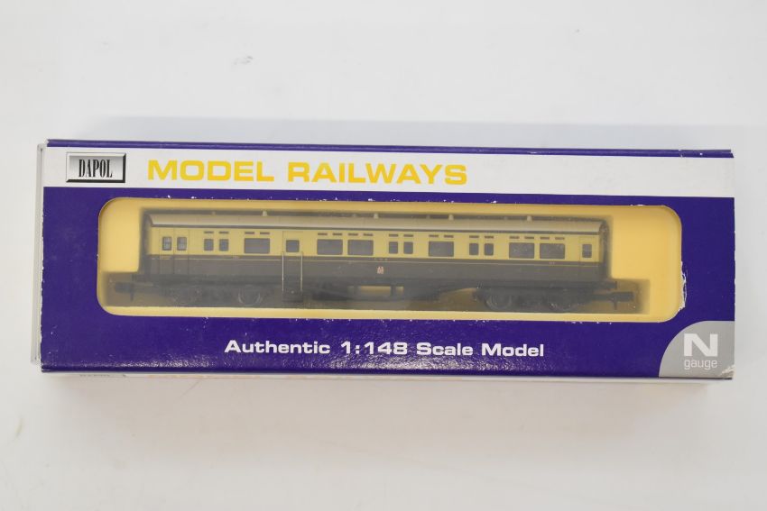 Four Dapol GWR N gauge model railway auto coaches, all in original boxes.