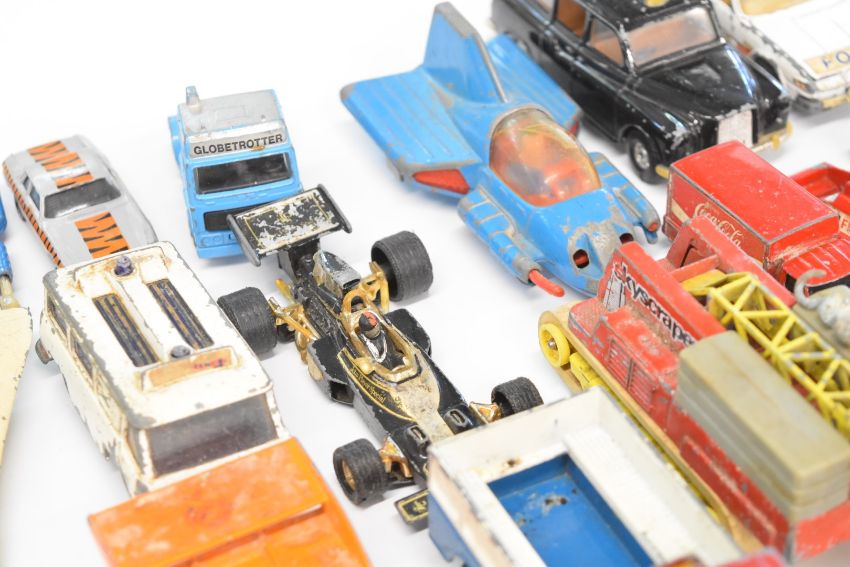 A collection of mainly Corgi diecast model vehicles to include Buck Rogers Starfighter, Captain Scarlet Spectrum Pursuit Vehicle, Batmobile, Star Wars Snow Speeder and John Player Special F1.