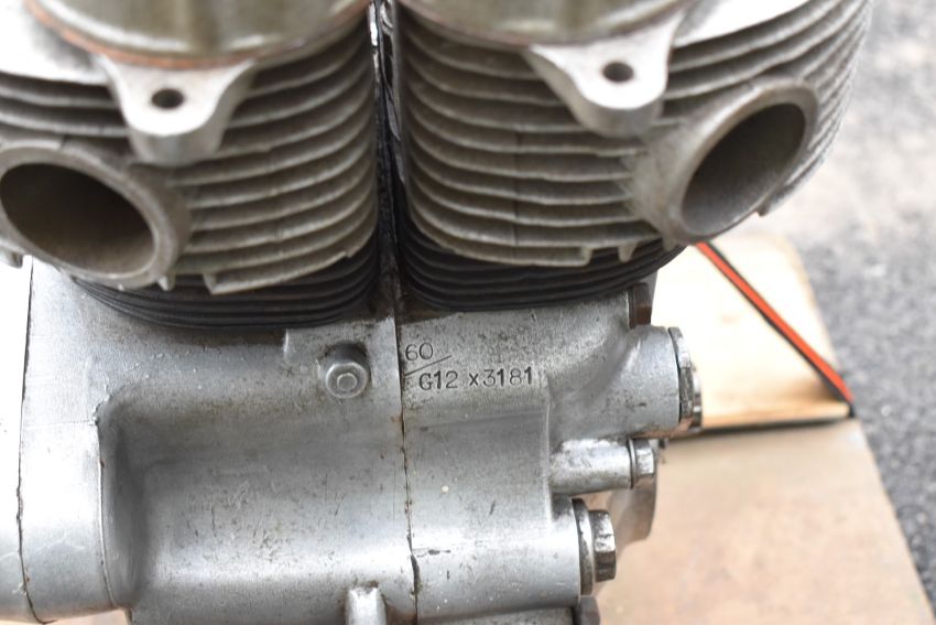 1960 Matchless G12 650cc twin motorcycle engine with engine plates and Lucas K2F magneto