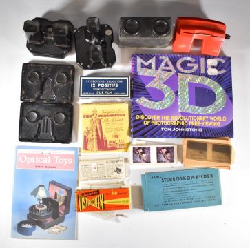 Stereoscopic cards and viewers to include Viewmaster 3D, 1953 coronation, Verascope Richard glass slides and a quantity of Kroll's stereoscopic cards