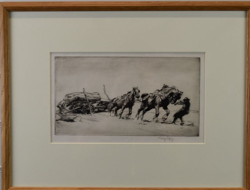 George Soper (1870-1942) signed etching Timber Hauling No 1 etching, 17 x 29cm, in beech frame