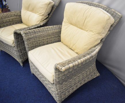 Pair of Hartman faux wicker garden / conservatory chairs, with cushions