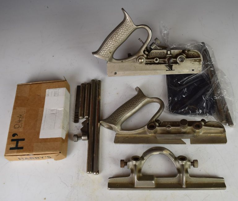 Two Record 044 woodworking plough planes, with cutters