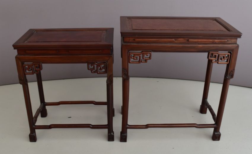 Chinese nest of two hardwood tables with fretwork friezes, W61 x D35 H 66cm