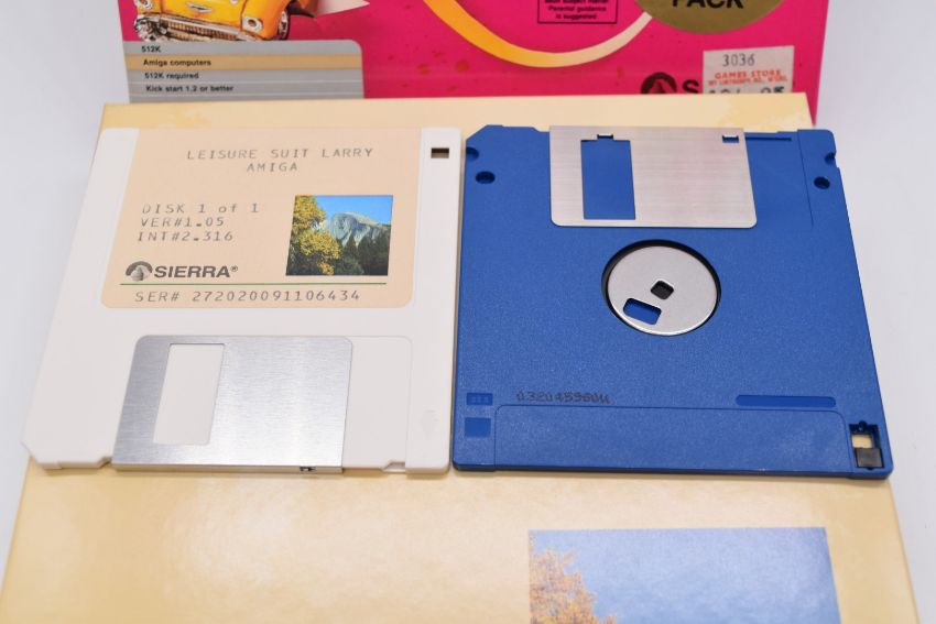 Leisure Suit Larry in Land of the Lounge Lizards Commodore Amiga computer game, in original box with instructions.