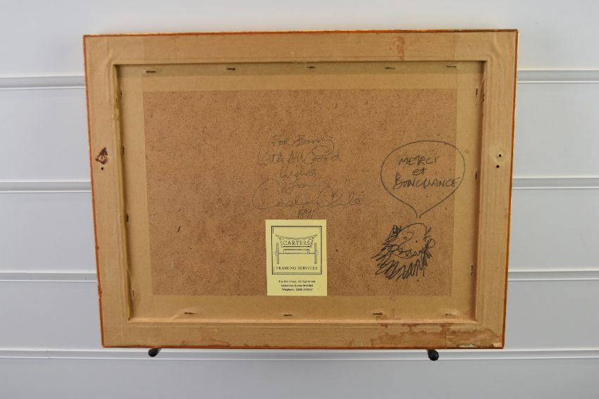 Graham Clarke (born 1941) signed limited edition (29/75) multiple portrait 'La Queue', signed and titled to lower margin and also further signed verso, 20 x 28.5cm, in gilt frame
