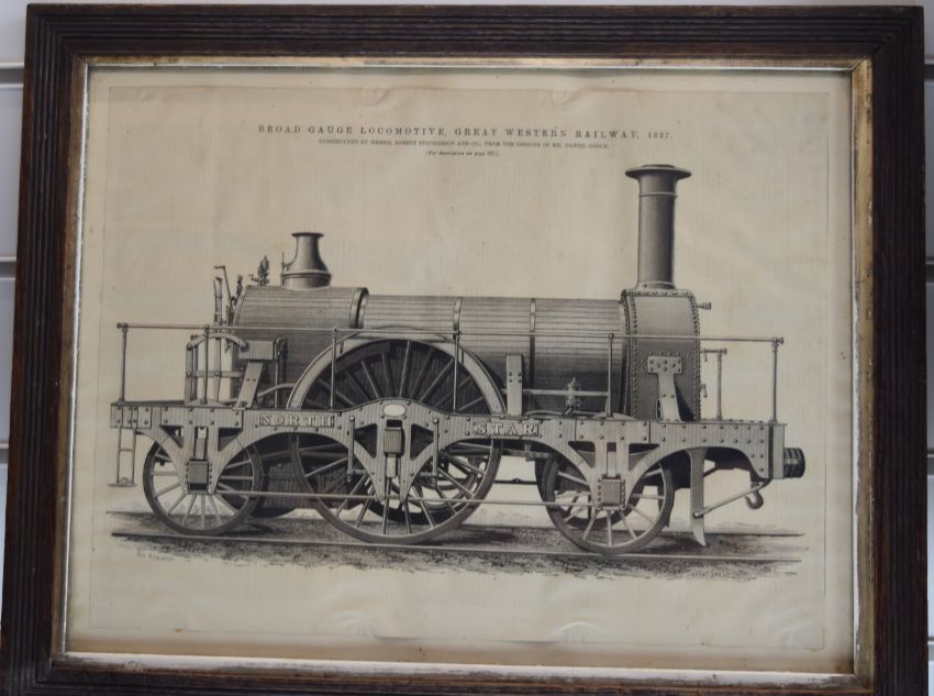 Framed set of Ian Allen books, together with a print of the Great Western Railway North Star locomotive and a Newcastle & Carlisle railway 1847 notice