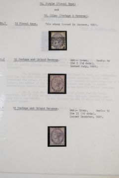 GB mostly Queen Victoria stamp collection in five albums from early pre-stamp postal history, Mulready, seven 1d blacks including one on cover and three with four margins, 1840 2d blue (poor), imperf 1d red browns from black plates, 1d reds alphabets, plate numbers include PL225 (cut at top), SP mint and used. A specialist collection offered complete