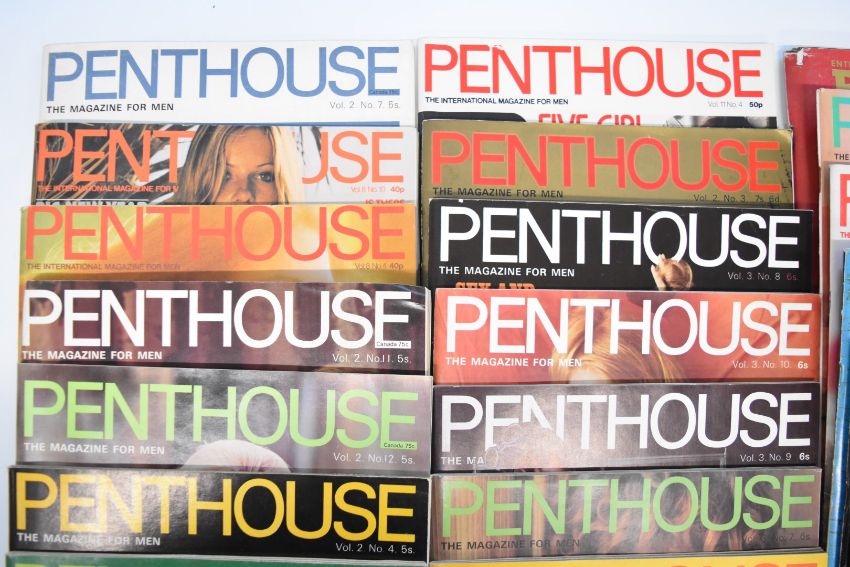 A collection of vintage 1960s/70s glamour magazines including Mayfair, Penthouse and Playboy