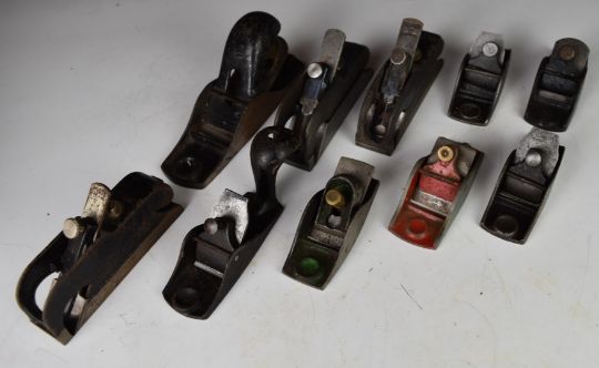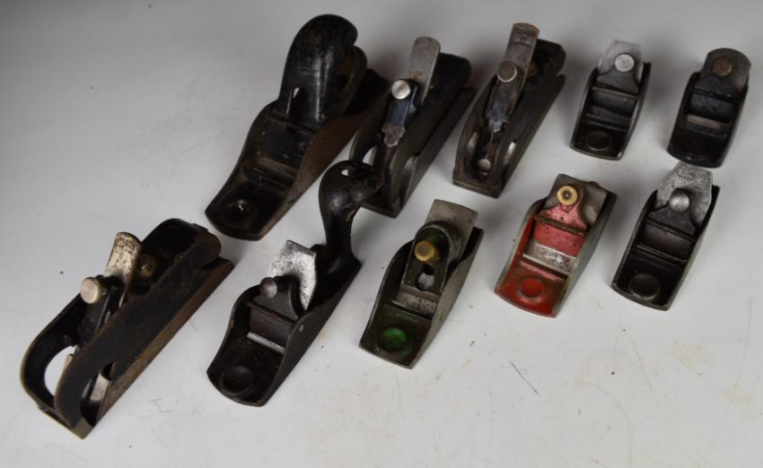 Ten various small woodworking planes to include Record and believed Stanley examples, length of longest 14cm