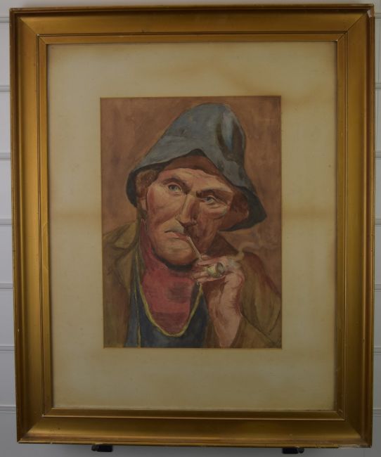 Watercolour portrait of a fisherman, initialled LWM lower right 36 x 26cm, in gilt frame. Provenance: Painted by Lewis Wayne Morgan former resident of Hafod Fawr and consigned by a descendant