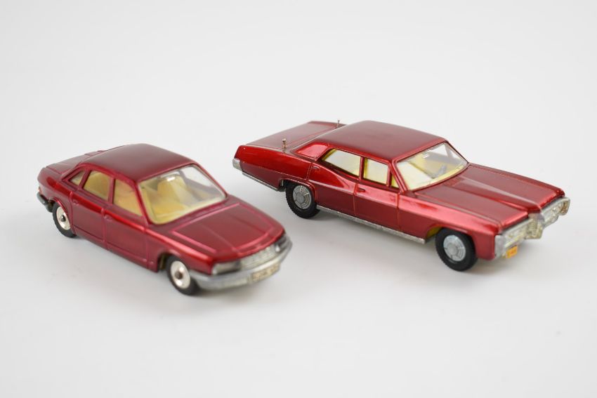 Two Dinky Toys diecast model vehicles Pontiac Parisienne with retractable aerials, red body and yellow interior 173 and NSU Ro 80 with red body and cream interior 176, both in original boxes.