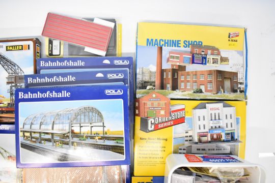 Collection of N gauge model railway building kits and similar packs, to include Walthers Cornerstone, continental, Kestrel Designs etc