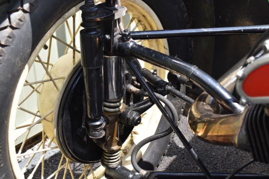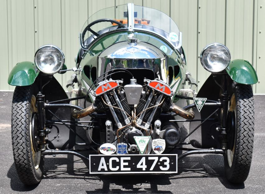 1934 Morgan three wheeler Super Sports, registration number ACE 473, with V5c. Purchased by the vendor's late father who undertook a comprehensive restoration, and as an ex RAF fast jet engineer much attention to detail has been taken. He became good friends of Peter Morgan who was kind enough to supply plans for the ash frame. In the 1960's it was a racer known as Conquest and fitted with a Ford 10 engine at the time, in the late owner's custodianship it first had a JAP DTZ engine fitted until he had fully rebuilt the MX2 engine now installed, the vendor reports it also had a new worm and pinion. When at a show the vendor's late father was a approached by the previous owner who had had it as Conquest in the 1960's, who told him the gearbox had been converted to synchromesh at British Leyland, and that he even took the car on his honeymoon. The car has hydraulic brakes and both foot and hand throttles. The vendor believes there may be some more paperwork amongst his father's effects but has not come across anything as yet - anything found will of course be forwarded to the new owner.10%+VAT buyer's premium on this lot