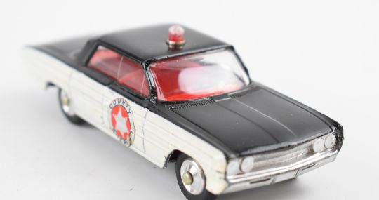 Corgi Toys diecast model Oldsmobile Sheriff Car with black and white body and 'County Sheriff' decals, 237, in original box.
