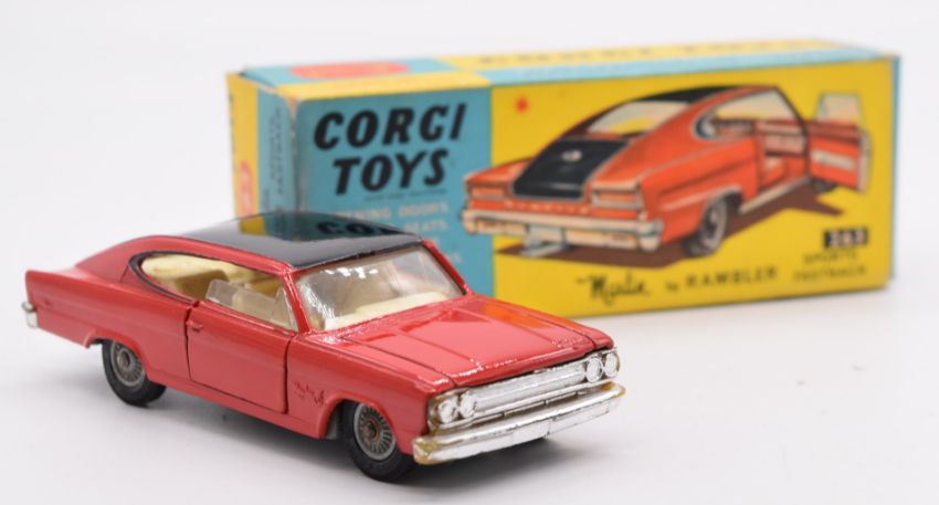 Corgi Toys diecast model Marlin Rambler Sports Fastback with red body, black roof and cream interior, 263, in original box.