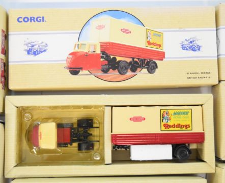 Nine Corgi Classic Commercials diecast model trucks and lorries to include Bedford Articulated Truck Billy Smart's 97300, Scammell Scarab British Railways 97911 and Foden Tanker Hovis 97952, all in original boxes.