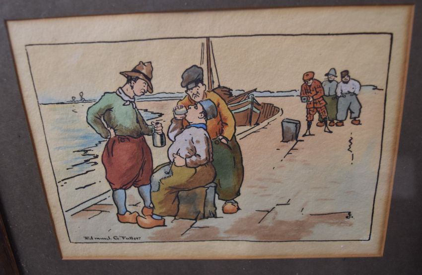 Edward George Fuller (1858-1940) set of four watercolour Dutch canal or harbour scenes, each 15 x 20cm, in oak frames