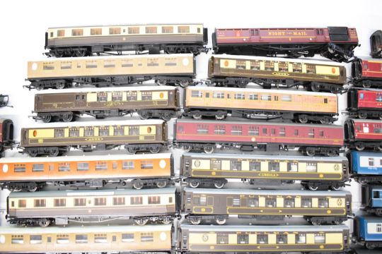 Fifty 00 gauge Hornby/Tri-ang passenger carriages to include LNER, BR and DSG.