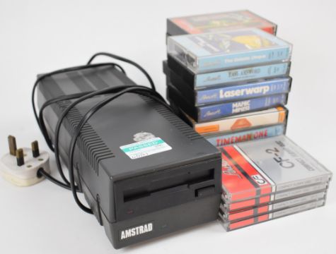 Two Amstrad CPC 464 home computers together with power supplies, disk drive, monitor and a collection of software.