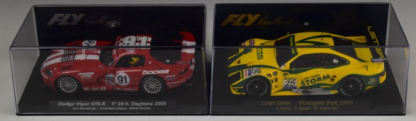 Five Fly Car Model model slot racing cars to include BMW M3 GTR, Porsche 911 GT1 98 and Lister Storm, all in original boxes.