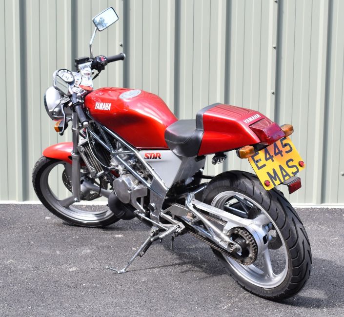 1987 Yamaha SDR 200cc single cylinder motorcycle, registration number E445 MAS, with V5c. First registered in the UK by the vendor in September 2020, purchased as a restoration project, receipts on file include refurbishing of the drake discs and callipers, brake master cylinder parts, rubber items, o rings and gaskets, new tyres, re hard chroming of forks. MOT expires 29/04/2024, odometer currently records 22678km10%+VAT buyer's premium on this lot