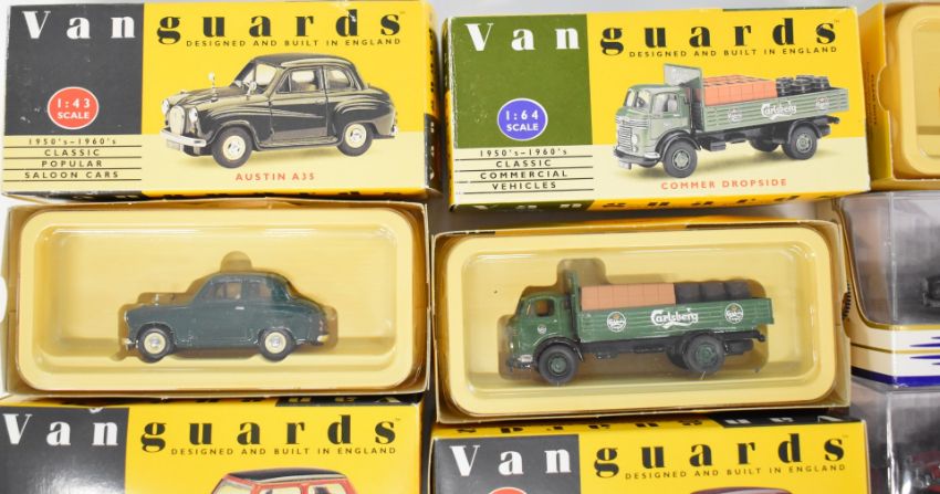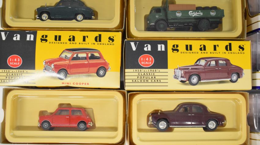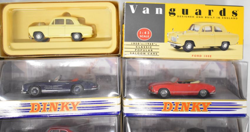 Eleven diecast model cars comprising vehicles by Matchbox 'The Dinky Collection' and Lledo Vanguards, all in original boxes.