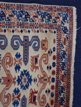 Turkoman rug with geometric design and borders on a cream ground, 177 x 110cm