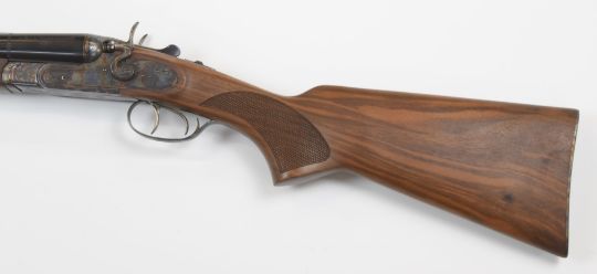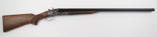 Huglu HRZ 12 bore side by side hammer action shotgun engraved lock, underside, trigger guard, fences, thumb lever and top strap, chequered semi-pistol grip and forend, double trigger and named 30 inch multi-choke barrels, overall length 119cm, length of pull 36.5cm, serial number 19C4476, in original fitted case with three additional chokes, choke key, stickers and related paperwork. PLEASE NOTE THAT A VALID RELEVANT FIREARMS/SHOTGUN CERTIFICATE IS REQUIRED TO HANDLE/PURCHASE THIS ITEM.