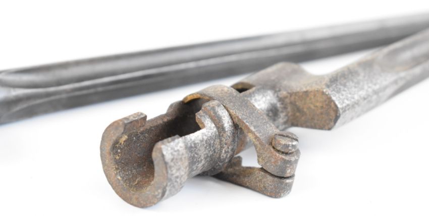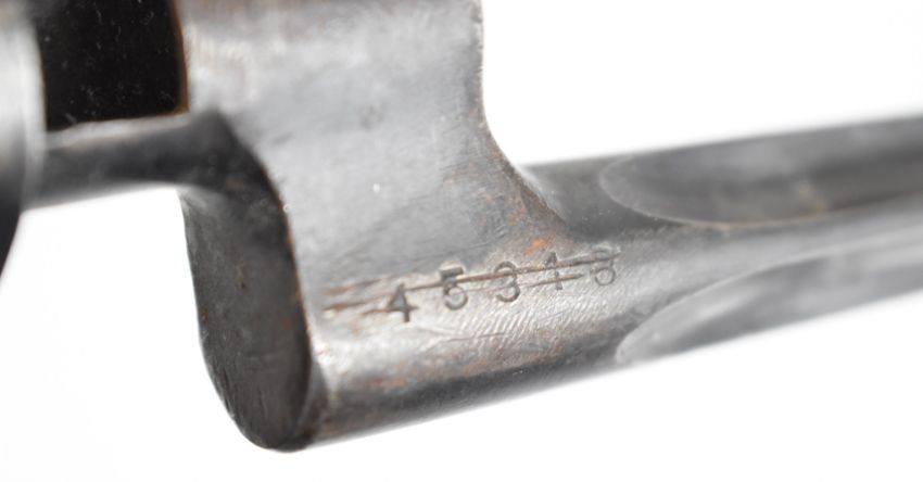 Three cruciform bladed socket bayonets, one with push button release spring, blade lengths 43cm. PLEASE NOTE ALL BLADED ITEMS ARE SUBJECT TO OVER 18 CHECK ON COLLECTION OR DELIVERY