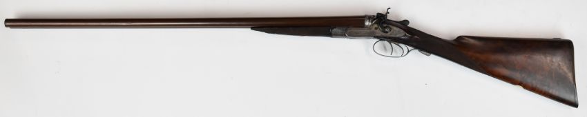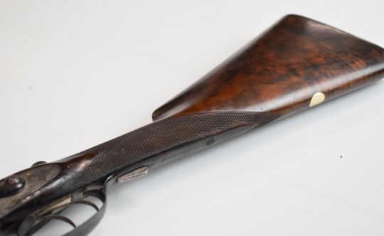 W W Greener 16 bore side by side hammer action shotgun with grip safety, game counter inset into the top of the stock, named and engraved lock, engraved hammers, underside, trigger guard, fences, thumb lever and top strap, chequered grip and forend, vacant cartouche to the underside of the stock, double trigger and 30 inch Damascus barrels engraved 'Pattern No 3084 Treble Wedge Fast W W Greener St Mary's Works Birmingham Winners of the London Gun Trials 1875', overall length 119cm, length of pull 37cm, serial number 16500. PLEASE NOTE THAT THIS LOT IS BEING SOLD AS STOCK AND ACTION ONLY - A VALID RELEVANT RFD CERTIFICATE IS REQUIRED TO HANDLE/PURCHASE THIS ITEM.