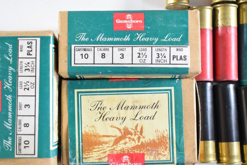 Ninety-eight 8 bore shotgun cartridges including Remington, Eley-Kynoch and Gamebore, some in original boxes PLEASE NOTE THAT A VALID RELEVANT FIREARMS/SHOTGUN CERTIFICATE IS REQUIRED TO HANDLE/PURCHASE THIS ITEM. Please note we are not able to offer postage for this lot.