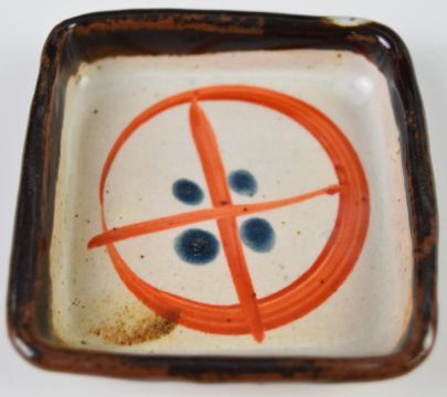 Studio pottery pin dish, probably John Maltby, signed verso, diameter 7cm