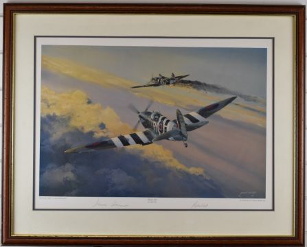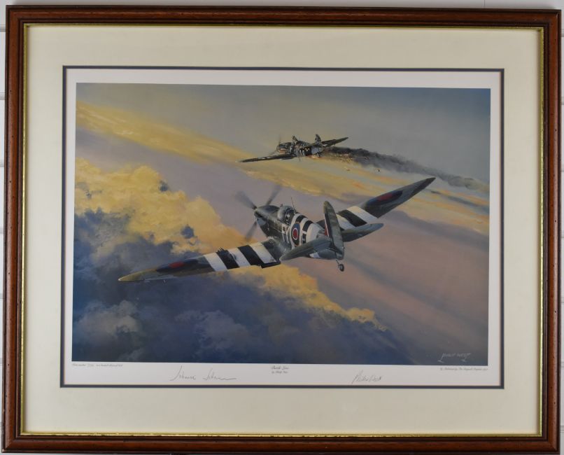 Philip West signed limited edition 294/850 print 'Battle Line', signed in pencil by Johnnie Johnson, in glazed frame, 81 x 65cm including frame