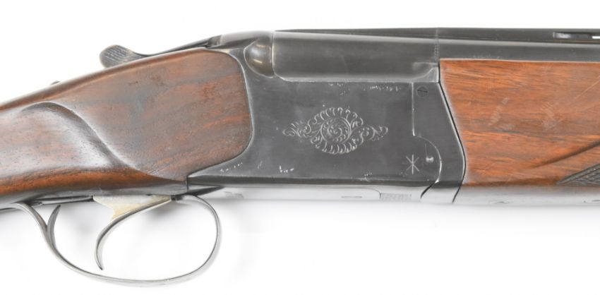 Baikal 27E-1C 12 bore over and under ejector shotgun with engraved lock, chequered semi-pistol grip and forend, single trigger and 27.25 inch barrels choked improved cylinder and ¼, serial number E03794.  PLEASE NOTE THAT A VALID RELEVANT FIREARMS/SHOTGUN CERTIFICATE IS REQUIRED TO HANDLE/PURCHASE THIS ITEM.