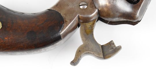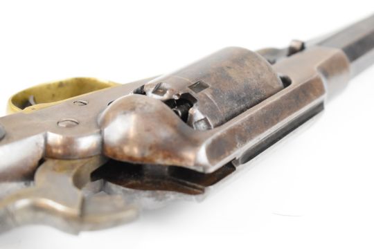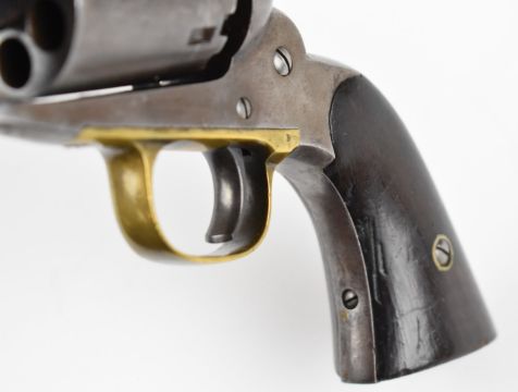 Remington New Model Army .44 six-shot single action revolver with shaped wooden grips, brass trigger guard and 8 inch octagonal barrel stamped 'Patented Sept 14 1858 E Remington & Sons Ilion New York USA New-Model', overall length 37cm, serial number 25849.