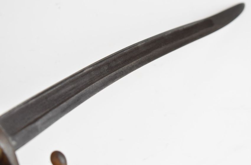 French 1866 pattern chassepot bayonet, brass grip and downswept quillon, 57cm fullered yataghan blade and scabbard. PLEASE NOTE ALL BLADED ITEMS ARE SUBJECT TO OVER 18 CHECK ON COLLECTION OR DELIVERY