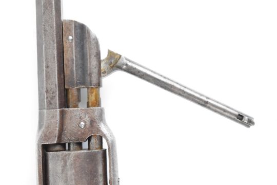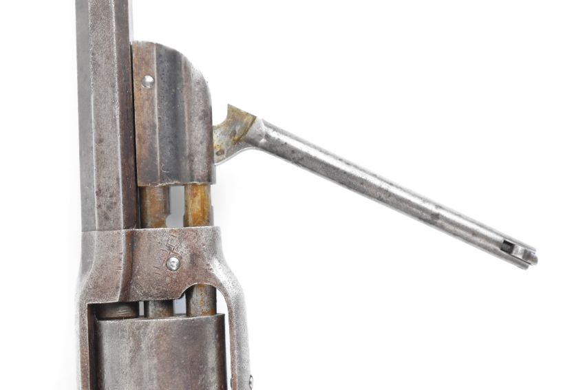 Savage Arms Model 1861 Navy .36 six-shot double action percussion revolver with wooden grips, top flat stamped 'Savage RFA Co Middletown Ct H S North Patented June 17 1856 January 18 1859 May 15 1860' and 7 inch octagonal barrel, overall length 38cm.