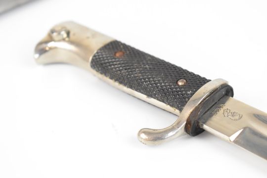 WW2 German KS98 dress bayonet with leather grips and WKG to the 24cm fullered blade, with scabbard. PLEASE NOTE ALL BLADED ITEMS ARE SUBJECT TO OVER 18 CHECK ON COLLECTION OR DELIVERY