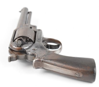 Starr Arms Co. New York .44 five-shot double action percussion revolver with steel frame stamped to one side 'Starr Arms Co New York' and to the other 'Starr's patent Jan 15 1856', shaped mahogany grip and 6 inch barrel, overall length 33.5cm, serial number 6425.