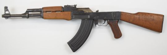 Deactivated AK47 7.62x54mm assault carbine rifle with wooden pistol grip, adjustable sights, belt loops and 40cm barrel, overall length 87cm, serial number 02666, with de-activation certificate dated 22/06/2023.