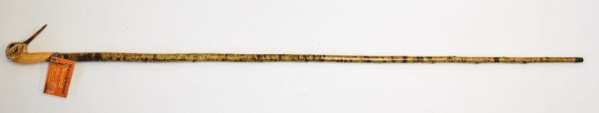 Wuzzlewood Woodcraft signed carved bird head walking stick, length 138cm