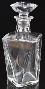 A pair of Baccarat clear faceted glass decanters and stoppers, 23cm tall.