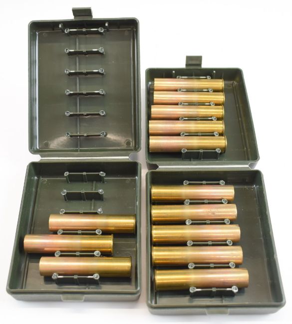 Two rifle cartridge re-loading die sets .500 and .584 with related and .577 empty brass cases.