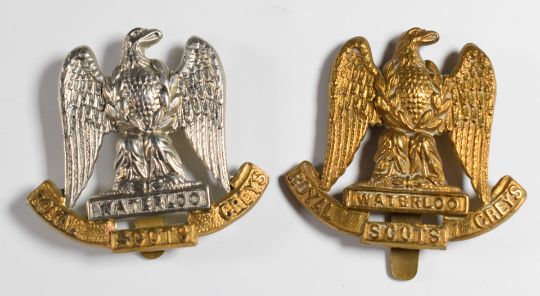Ten British Army Cavalry Regiment cap badges including 3rd Hussars, 4th Royal Irish Dragoon Guards, 7th Dragoon Guards, Royal Dragoons and the Royal Scots Greys