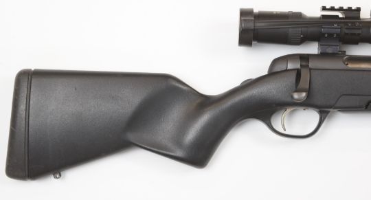 Steyr Mannlicher .243 bolt-action rifle with semi-pistol grip, composite stock, Zeiss Diavari V 2.5-10x50 scope, sound moderator and 29 inch barrel, overall length 121cm, serial number 3017930.  PLEASE NOTE THAT A VALID RELEVANT FIREARMS/SHOTGUN CERTIFICATE IS REQUIRED TO HANDLE/PURCHASE THIS ITEM.