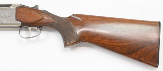 Laurona 12 bore over and under ejector shotgun with engraved lock, underside, trigger guard, top plate and thumb lever, chequered semi-pistol grip and forend, double trigger, vented top and central ribs and 28 inch multi-choke barrels, overall length 114cm, length of pull 37.5cm, serial number 230423. PLEASE NOTE THAT A VALID RELEVANT FIREARMS/SHOTGUN CERTIFICATE IS REQUIRED TO HANDLE/PURCHASE THIS ITEM.