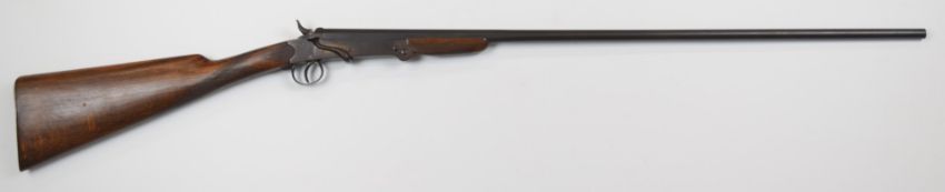 Belgian .410 single barrelled hammer action folding poacher's shotgun with chequered grip and forend and 29.5 inch barrel, overall length 113cm, length of pull 36cm, serial number 3828.  PLEASE NOTE THAT A VALID RELEVANT FIREARMS/SHOTGUN CERTIFICATE IS REQUIRED TO HANDLE/PURCHASE THIS ITEM.